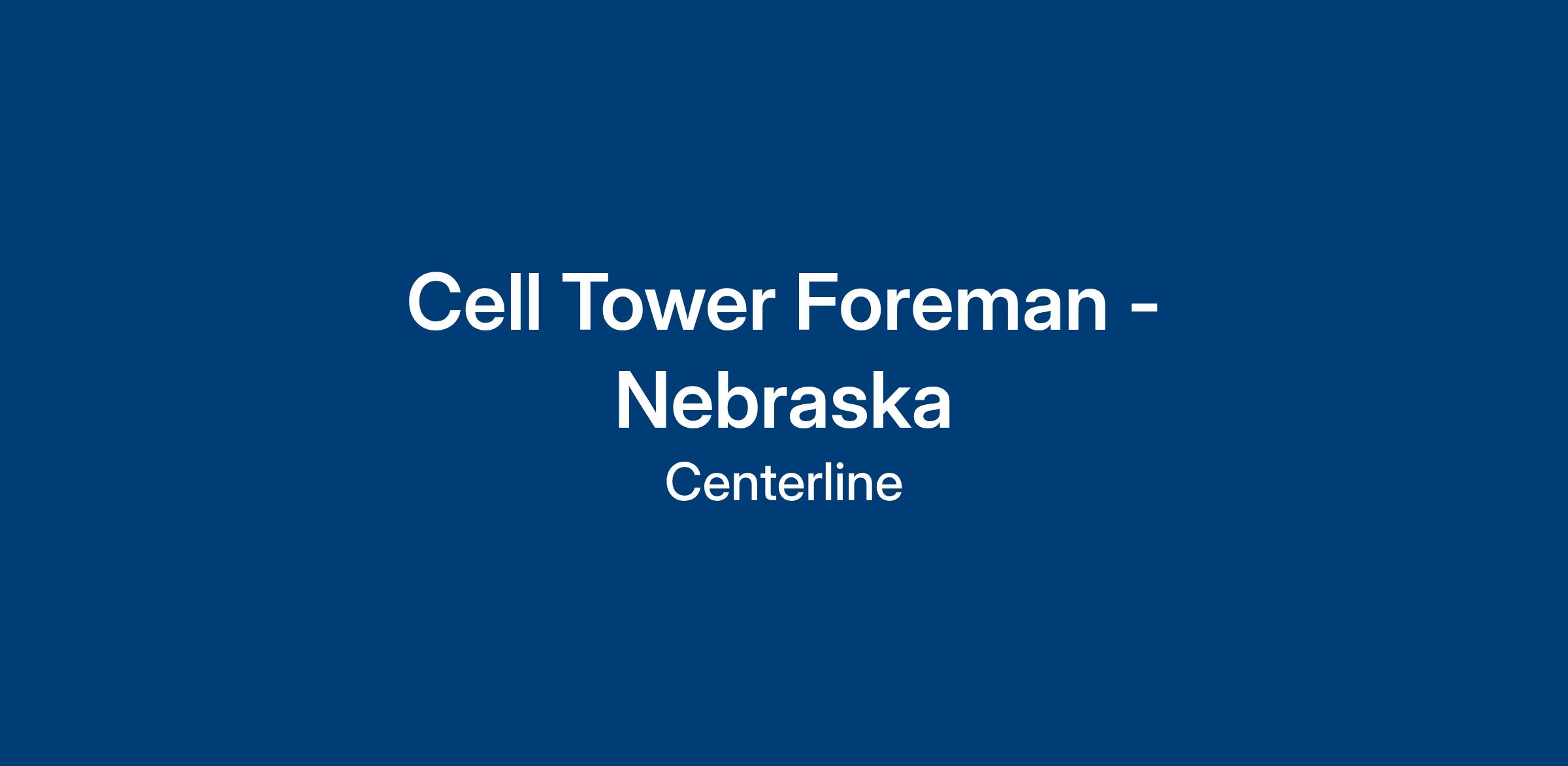 Centerline Communications, LLC is seeking an experienced Cell Tower Foreman with Samsung Viearo experience to support a market expansion in the Nebraska region. The Cell Tower Foreman will be responsible for the supervision and performance of various construction tasks in the areas of tower erection, coaxial cable and antenna installation, antenna mount installation, RF testing and troubleshooting. This position is for candidates with extensive experience in cellular construction. The Foreman will be required to closely supervise and assist with the construction and testing of cell sites. The ideal candidate will need to be able to lead experienced technicians, as well as train new technicians, while maintaining safe productive job sites. Ability to lead crews, extensive experience with construction, testing, and troubleshooting/maintenance are a must.