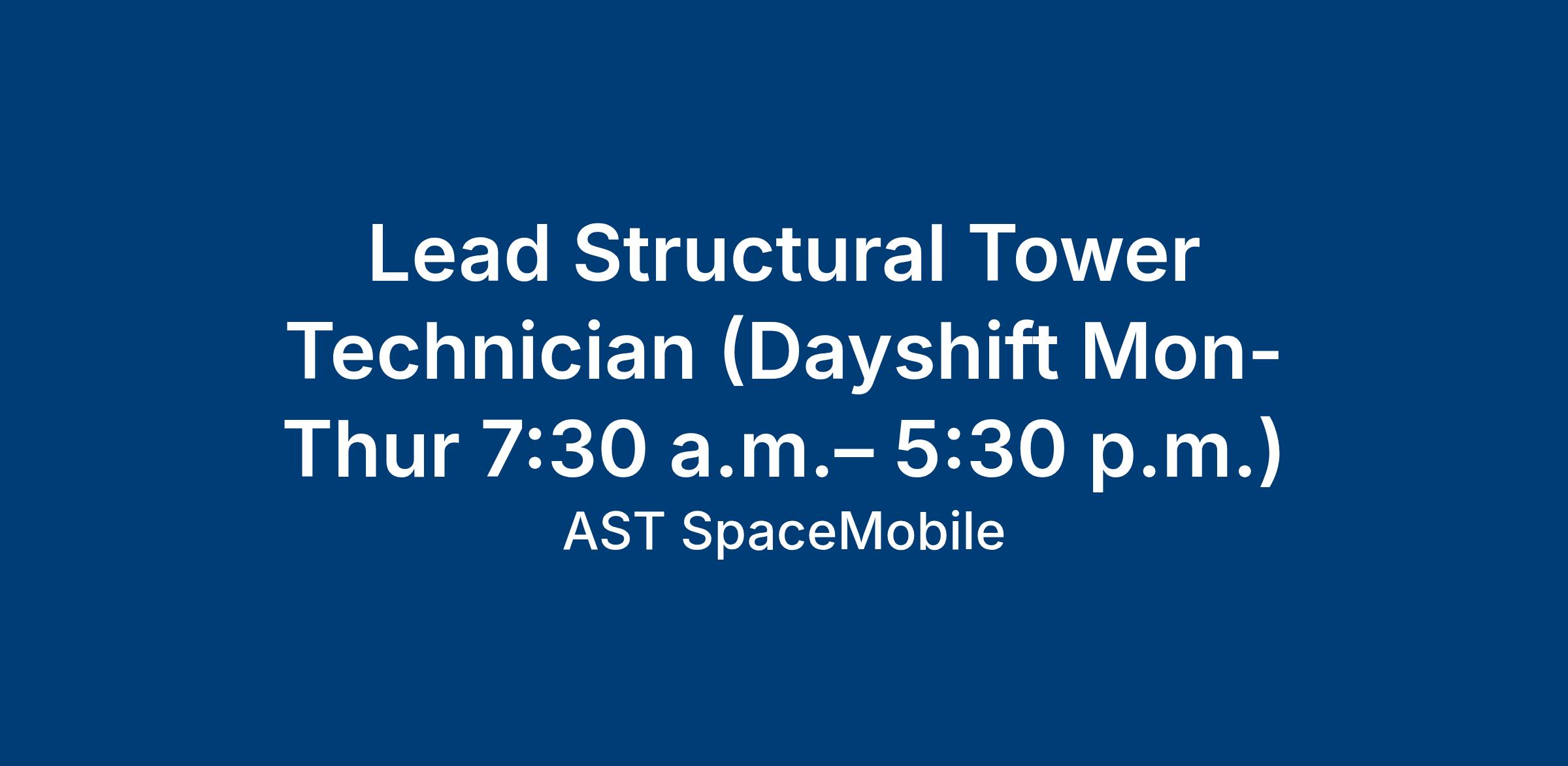 Lead Structural Tower Technician (Dayshift Mon-Thur 7:30 a.m.– 5:30 p.m.)