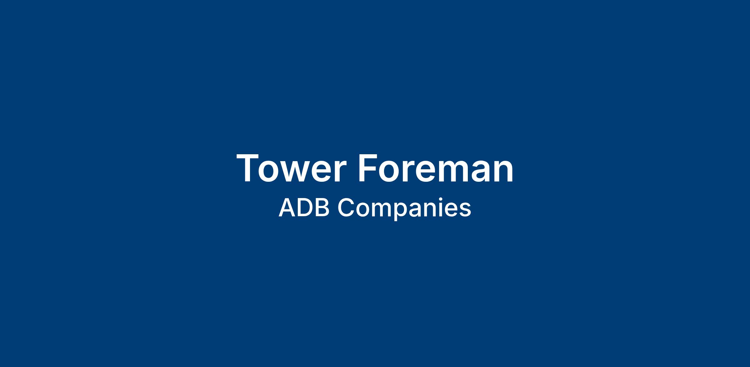 ADB Wireless is seeking a Tower Foreman to lead the day-to-day performance, safety, production, and quality expectations on a variety of wireless tower projects. This position will perform work on communication towers for the purpose of installing, replacing, and repairing wireless communications equipment. The Foreman will be a team leader and mentor to various Tower Technicians. The ideal candidate will have extensive wireless technical experience, a strong belief in the safety and well-being of team members, as well as a strong work ethic and ALL IN attitude to achieve results.